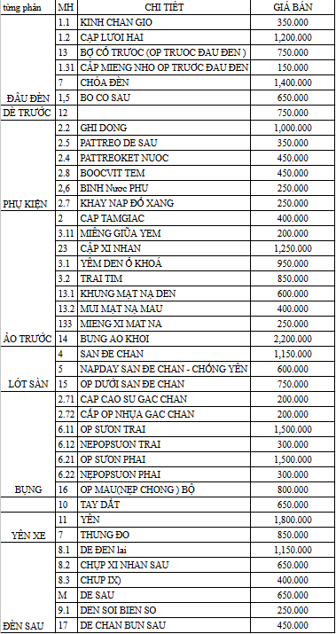So với hàng nhập khẩu nguyên bộ, giá bộ nhựa SH sản xuất trong nước chỉ bằng 1/2 đến 1/3, giúp khách hàng tiết kiệm đáng kể chi phí nhưng vẫn giữ được phong cách “xe sang”.