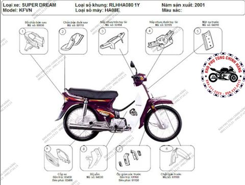 Đánh giá chi tiết Bộ nhựa dàn áo Dream 100cc (1997-2009) đầu ngắn. Có 8 mẫu.