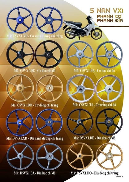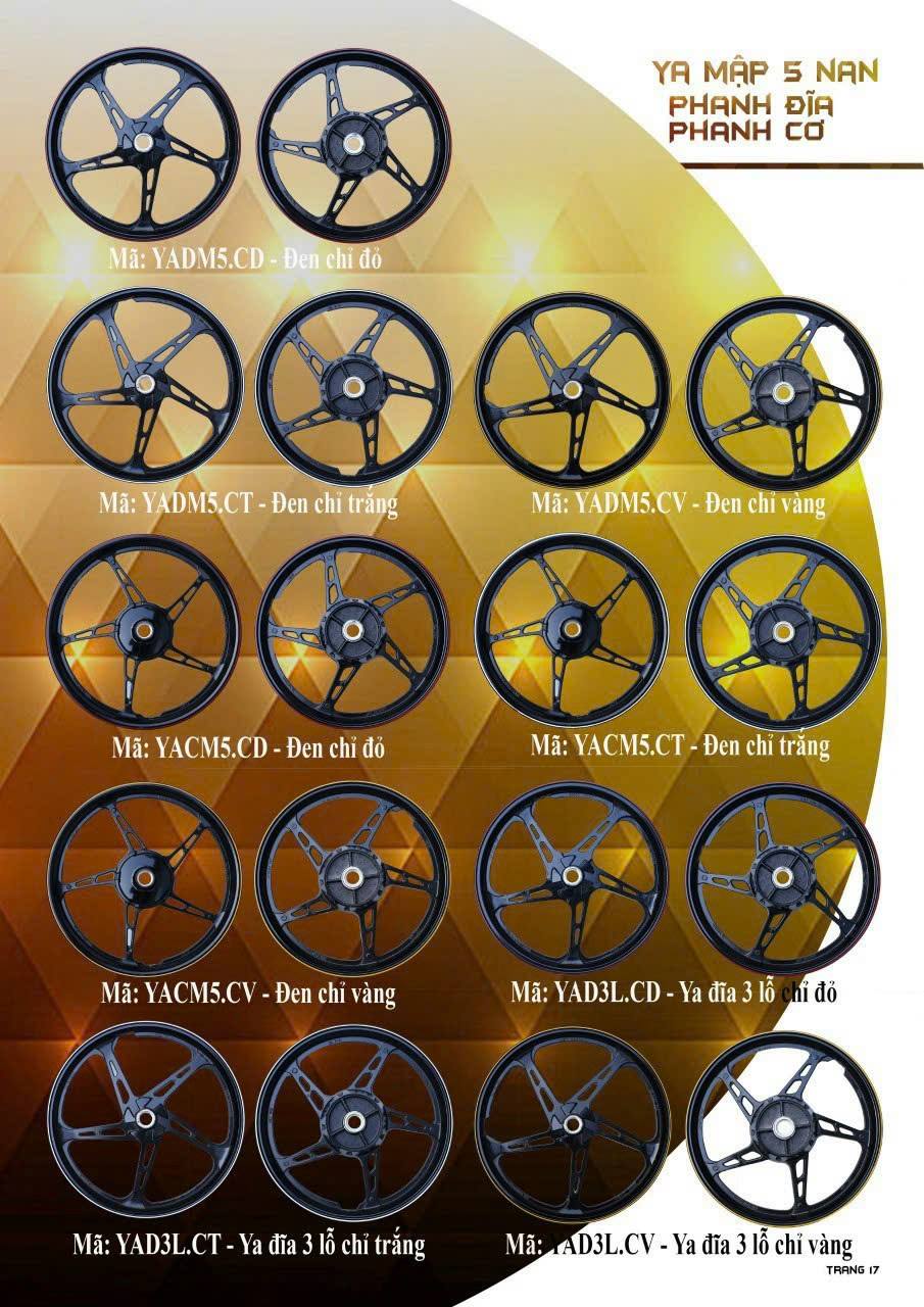Bạn đang tìm mâm đúc đẹp, chắc chắn và đúng thông số cho dòng xe số như Honda Dream, Wave, Future Neo hay Yamaha Sirius, Exciter, Jupiter tại Đà Nẵng? Đừng bỏ qua bộ mâm đúc 5 cây – 6 cây – xoắn thể thao – RCB – Racing Boy – Uma – Yoko, có sẵn tại cửa hàng với nhiều màu sắc & thiết kế độc quyền.