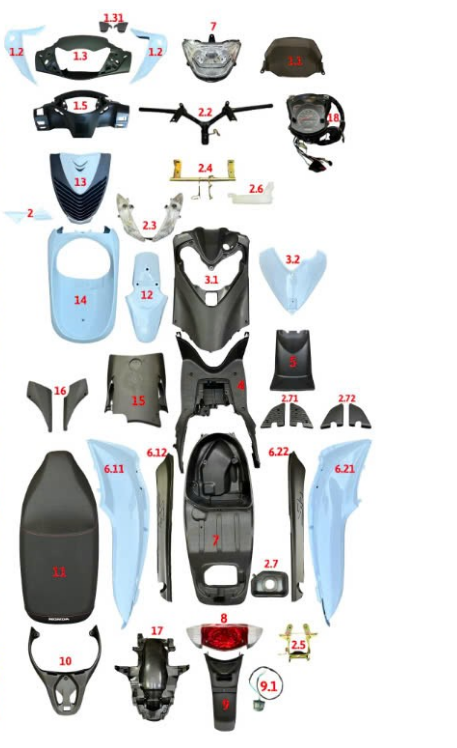Dàn áo SH Ý: Mặt nạ, bửng hông, ốp pô, kính chắn gió, dè chắn bùn…