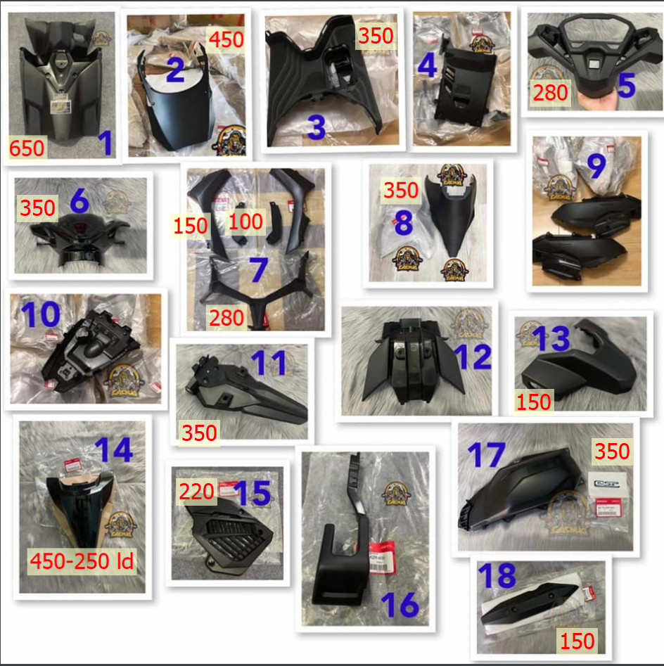 Mặt nạ, yếm, ốp sườn, chắn bùn, ốp pô, ốp đuôi, dè con.