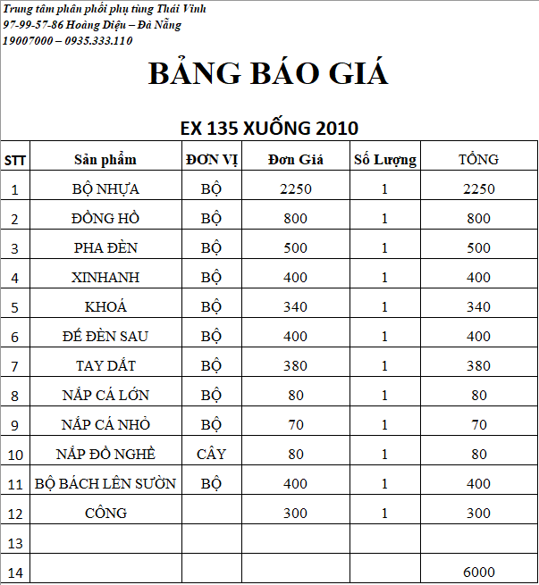 Và đầu tiên Vấn đề kinh phí để hoàn thiện 1 chiếc Exciter 135 xuống áo Exciter 2010 là bao nhiêu.? Đây là câu hỏi chung của khách hàng quan tâm ! Hiện tại, phần kinh phí thực hiện là 6tr ( danh mục sẽ thể hiện bảng dưới cùng )